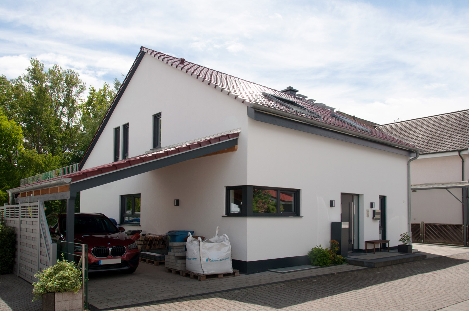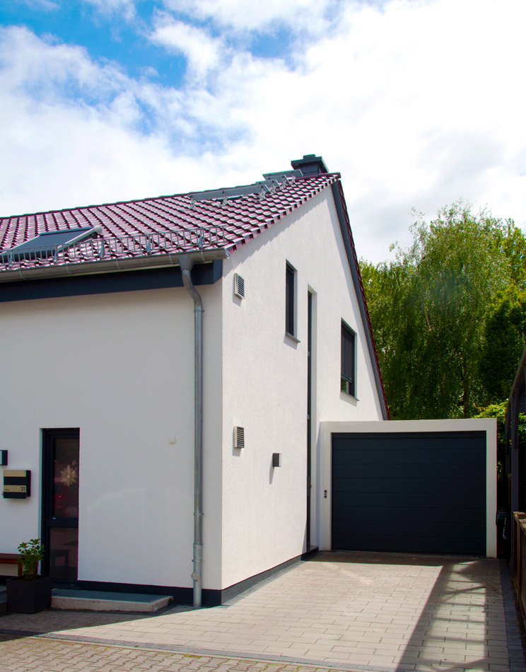 Neubau eines Einfamilienhauses mit moderner Wärmetechnik (Natural Cooling und Wärmepumpe mit Tiefenbohrung) inklusive Carport und Garage.