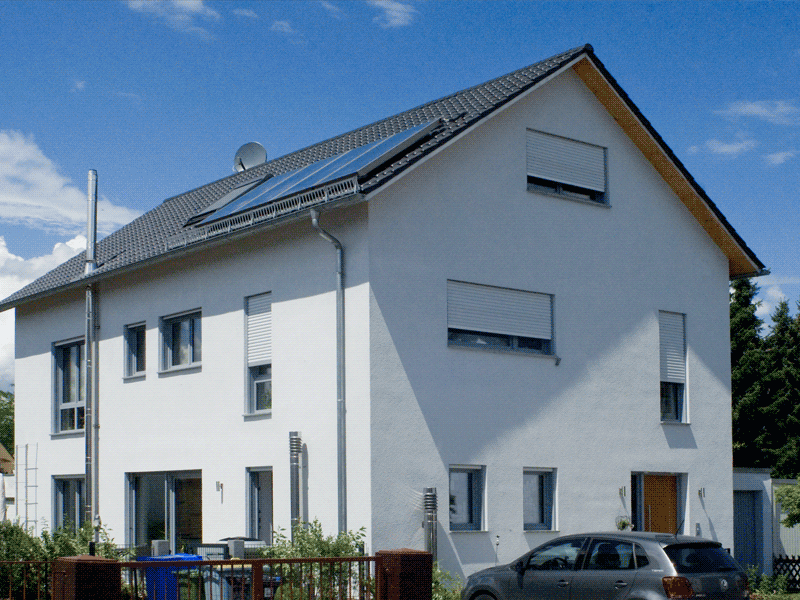 Das Einfamilienwohnhaus wurde unter Beachtung des Passivhausstandards geplant. Das Gebäude wird durch eine Luft-Wärmepumpe, welche von einer Solarthermischen Anlage unterstütz wird, beheizt. Ein Lüftungsanlage mit Wärmerückgewinnung sorgt für den Luftaustausch im Gebäudes. Die Wärmeübergabe erfolgt durch eine Deckenheizung, welche aufgrund des sehr guten Dämmstandards mit sehr geringen Temperaturen betrieben werden kann. Zusätzlich wurde ein Holzofen installiert, der über einen Wärmetauscher die Deckenheizung und Warmwasserbereitung unterstützt.